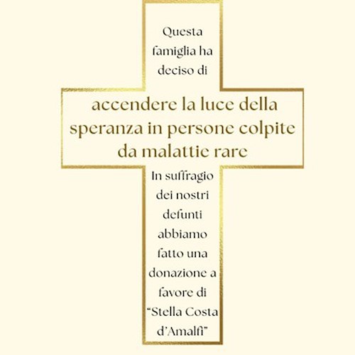 Al posto delle lampadine, a fianco alla luce perpetua, mettiamo una croce con una scritta per dichiarare al mondo che, a suffragio e per la memoria dei nostri cari, il nostro amore per loro ci ha spinti a fare una donazione ad una associazione meritevole. La scelta unanime è caduta sull'associazione "STELLA COSTA D'AMALFI", nata e voluta dalla famiglia di una nostra concittadina colpita da una malattia rara per la quale si sta tentando di trovare e sperimentare cure; le grandi aziende farmaceutiche non investono capitali e solo la generosità di tanti può aiutare e sostenere i ricercatori e i viaggi della speranza in USA e in Europa, Italia inclusa.